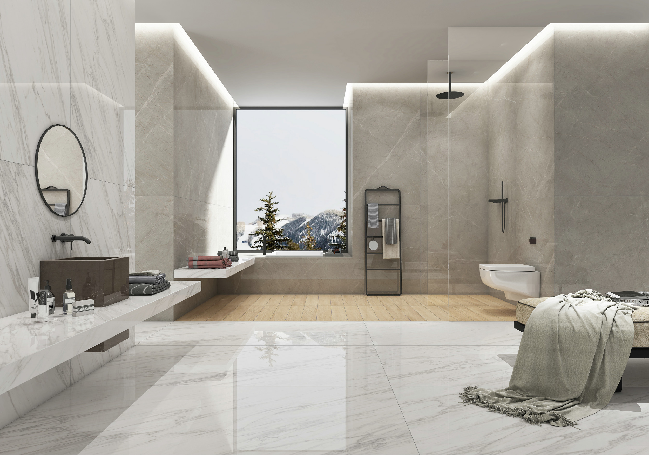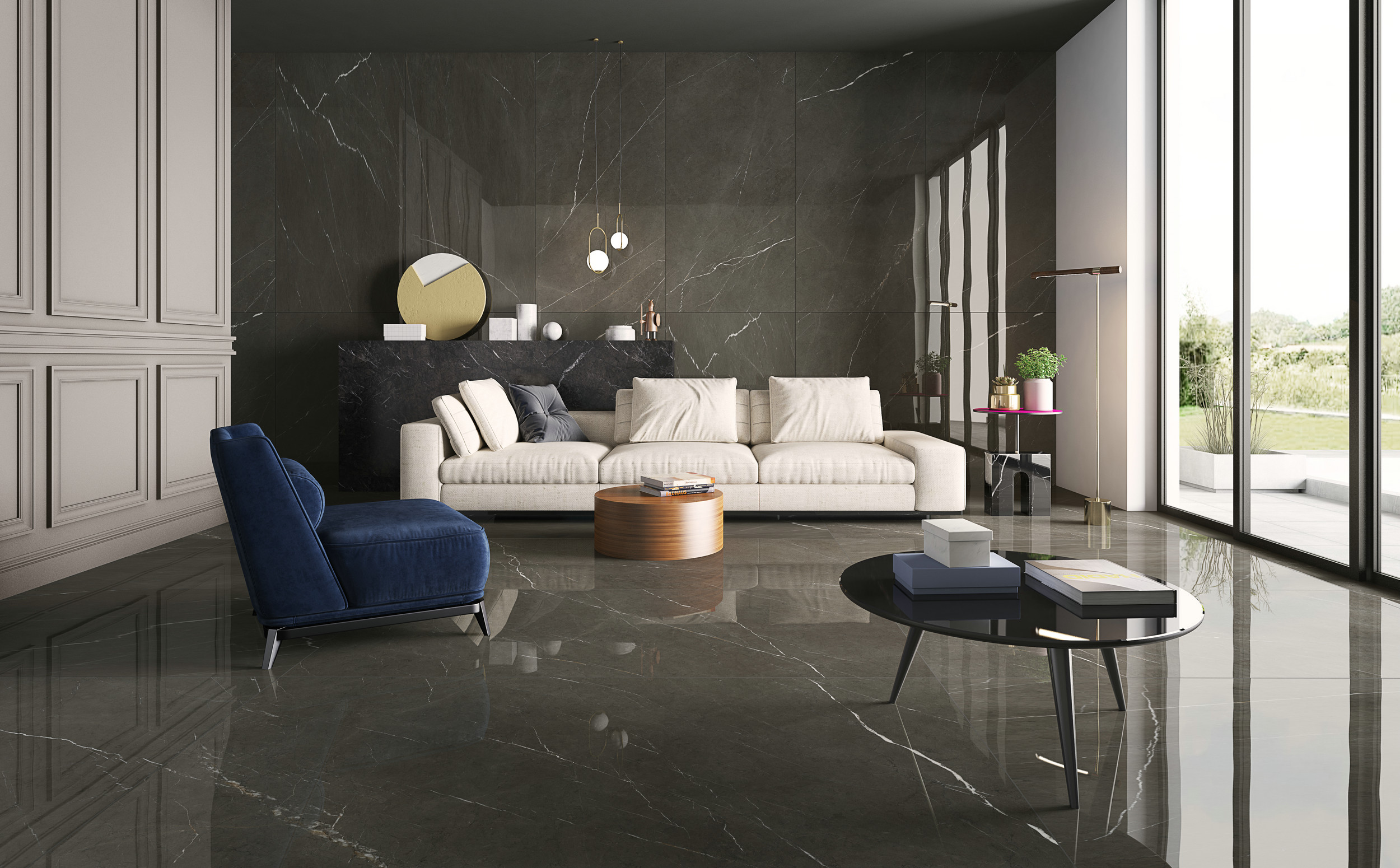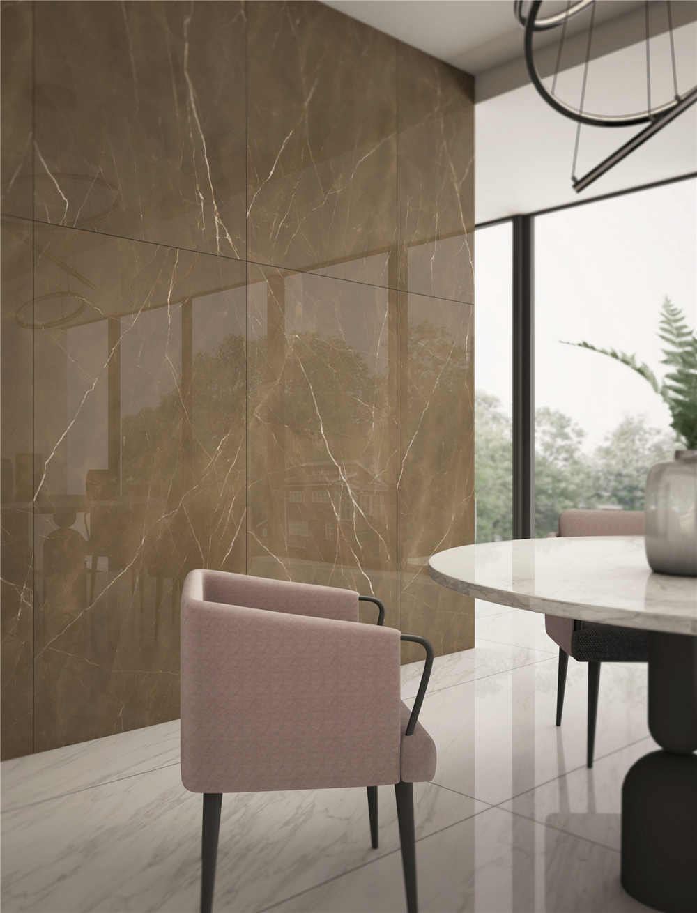 源自土耳其伊斯帕爾塔的天然石材君士坦丁灰,以獨特的色彩表現(xiàn)吸粉無數(shù),金色線條更是增加了時尚之感。