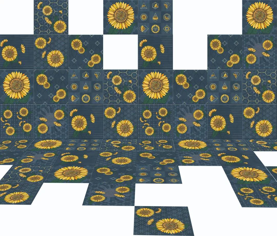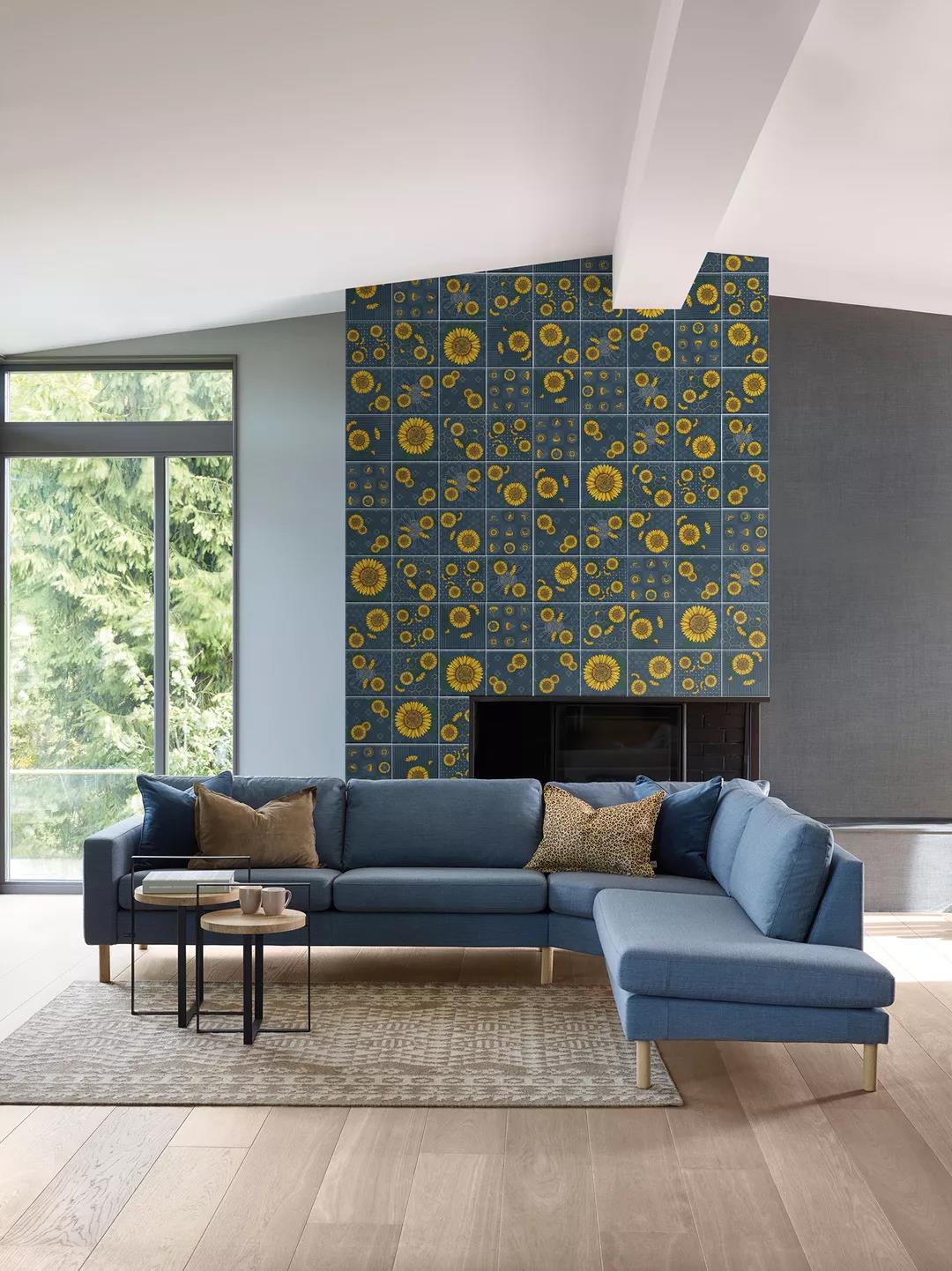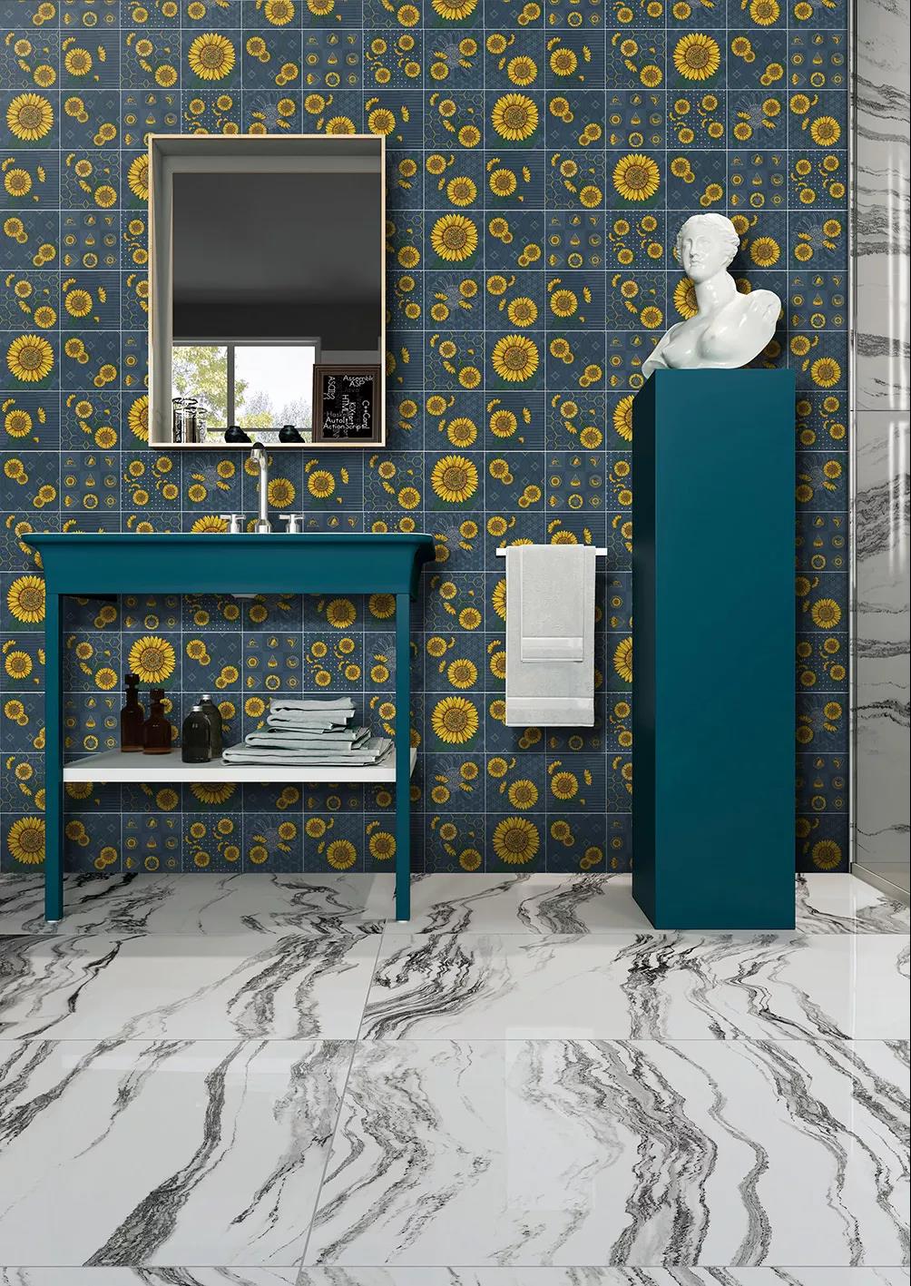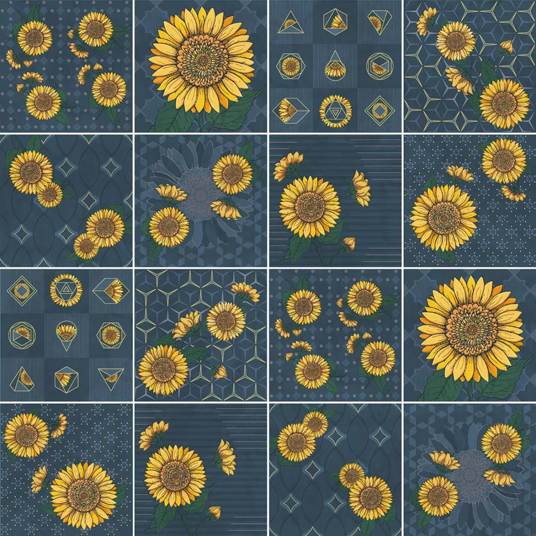 汲取梵高筆下炙熱陽光的生命張力,融入2020年國際五大主流色彩之一的古金黃,再結(jié)合2020年度流行色——經(jīng)典藍,詮釋蔚藍天空下如陽光般絢麗盛放的花朵,馬可波羅瓷磚以潮流色彩演繹經(jīng)典藝術(shù)元素,推出2020新品配件向日葵系列。