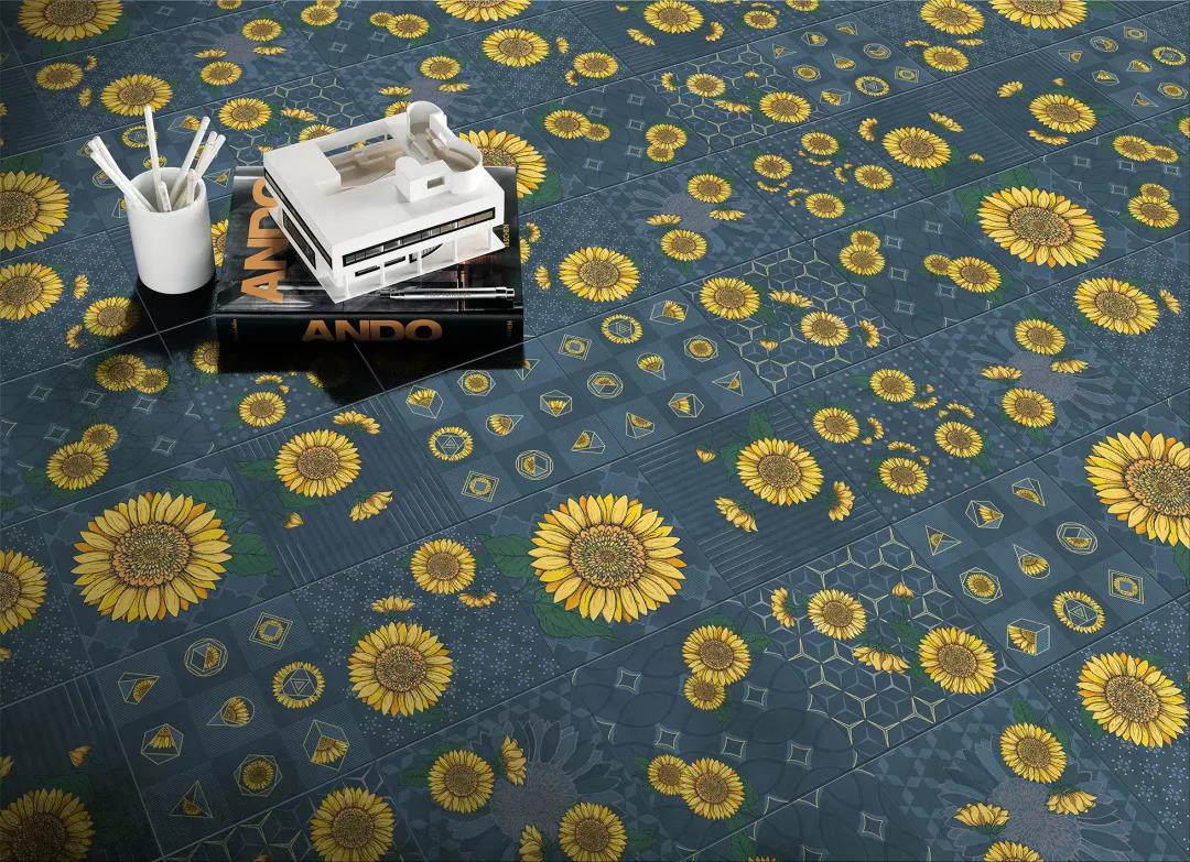 【產(chǎn)品創(chuàng)意】選用當(dāng)下時尚流行色調(diào),結(jié)合著名畫作。以瓷磚為畫板再次勾勒經(jīng)典,疊加瓷磚工藝釉料,噴墨、上釉、印金,三道工藝層層相映。釉面剔透,色彩明亮,金色隱約閃爍,只為打造最陽光明媚、百花盛開的理想居室。