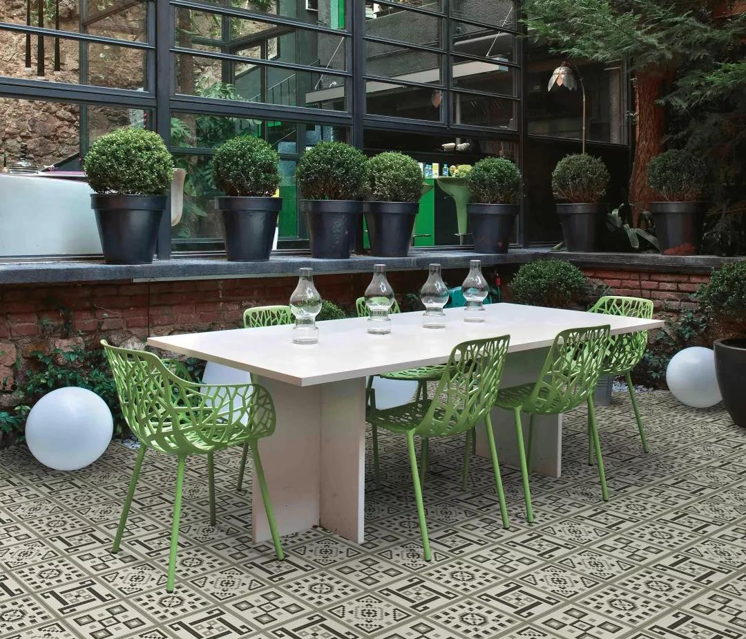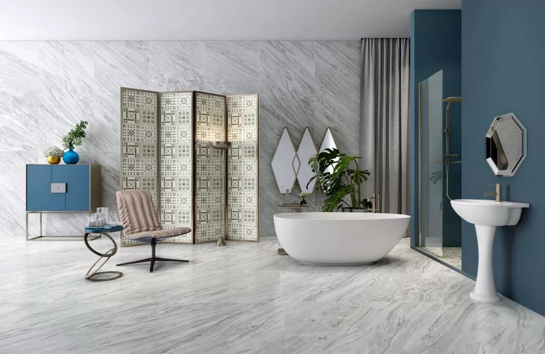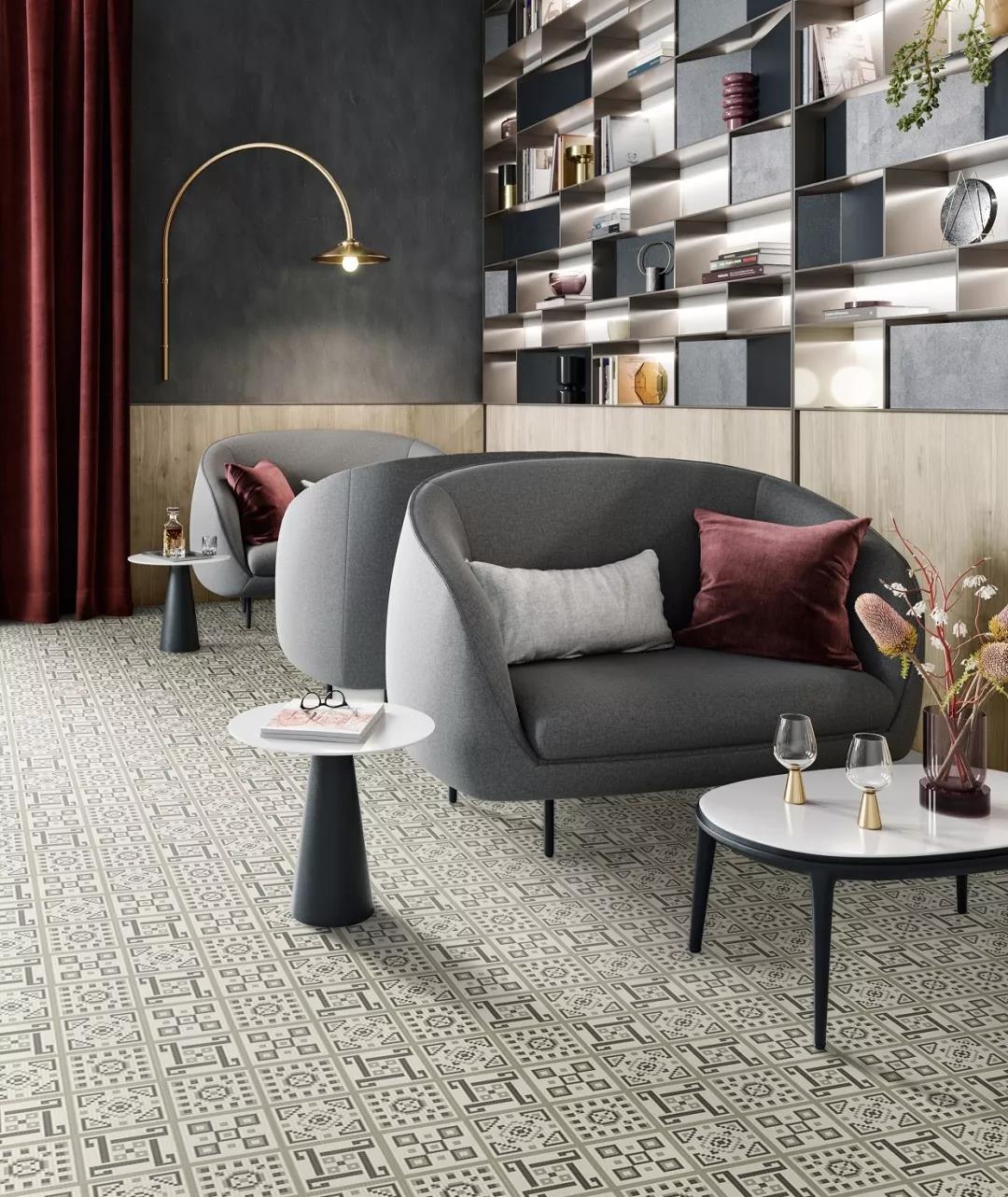 一磚精致,鋪就一屋美好。選一款圖案裝飾大堂地面,地面與窗外的綠植相輝映,清新雅致。