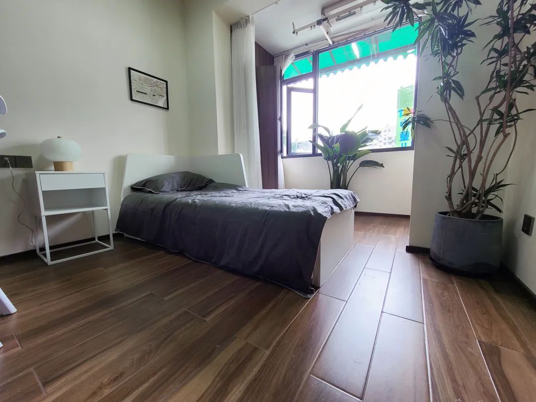臥室地面鋪貼馬可波羅瓷磚維拉,還原天然木質質感,自然溫馨。孩子所住次臥,則運用綠植搭配淺色系家具,更顯生機躍動。