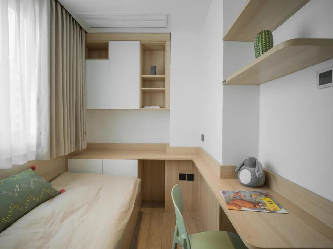 設(shè)計(jì)師妙手改造,將原本的兩居室改造成三室兩衛(wèi)。其中,主次臥室地面使用賽州檀木,自然木紋,溫馨時(shí)尚。