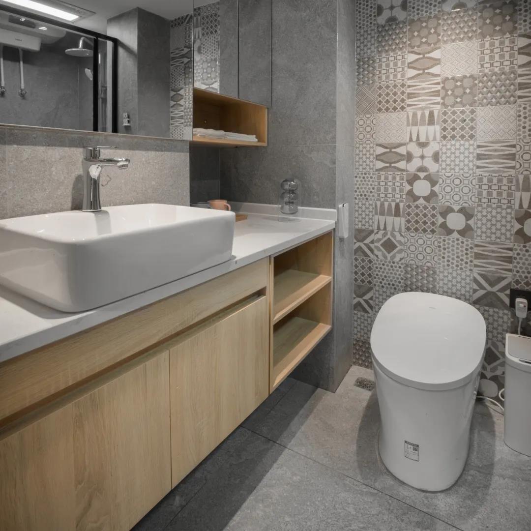 公衛(wèi)地面同樣使用超強(qiáng)防滑性能的馬可波羅瓷磚米希爾,背景以萊姆石花片點(diǎn)綴,讓生活更加絢爛多姿。