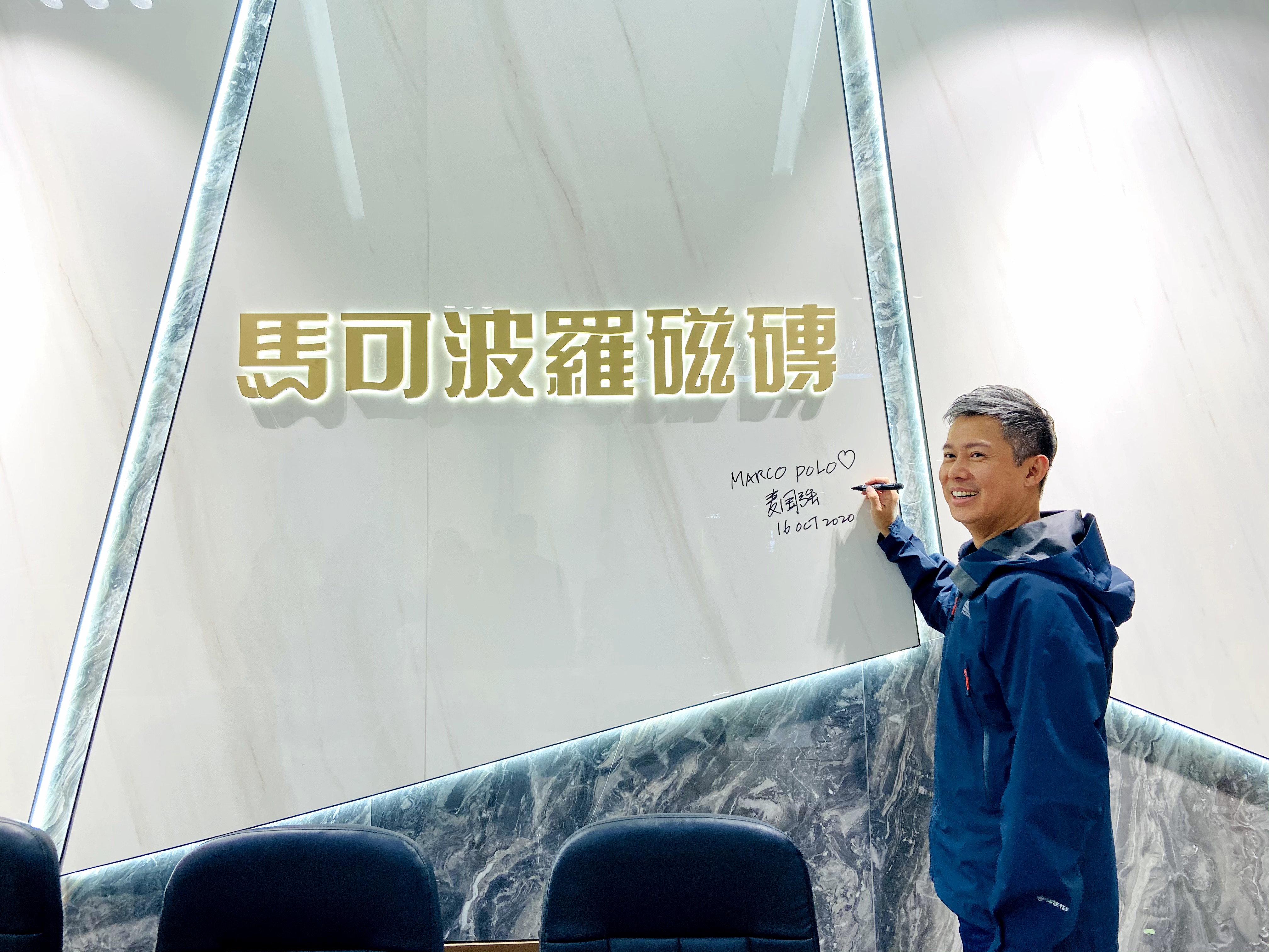 ▲ 馬可波羅瓷磚的卓越品質、創新科技贏得了設計師麥國強的點贊,并簽名留念