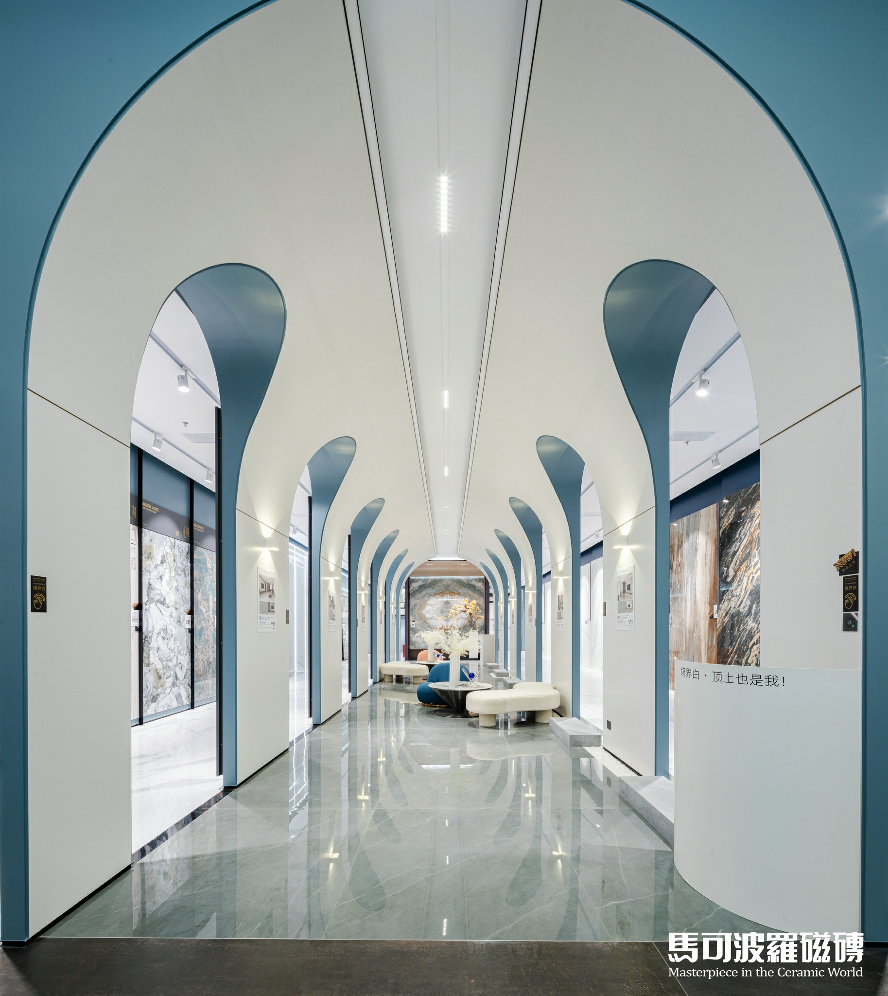 為滿足設計界曲面造型需求,不斷為構筑美好空間提供最優質的材料,2021年,馬可波羅自主研發馬可波羅曲面巖板,是陶瓷行業唯一可以實現6毫米厚高彎曲度弧形板的品牌,滿足曲線美學設計需求。