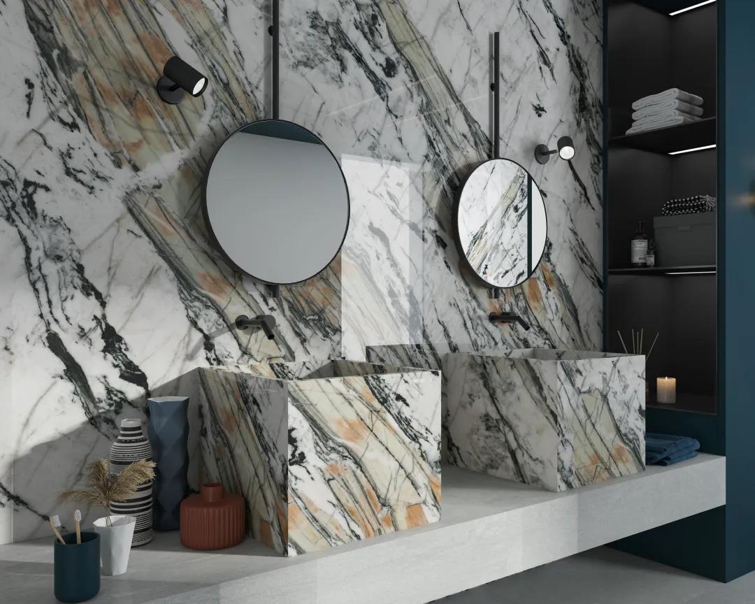 馬可波羅巖板系列應用方式從室內地墻面擴展到櫥柜、浴室臺、桌面等幾乎所有家居空間及戶外桌椅、樹木花盆、建筑外墻等戶外領域中,突破瓷磚傳統的應用界限。