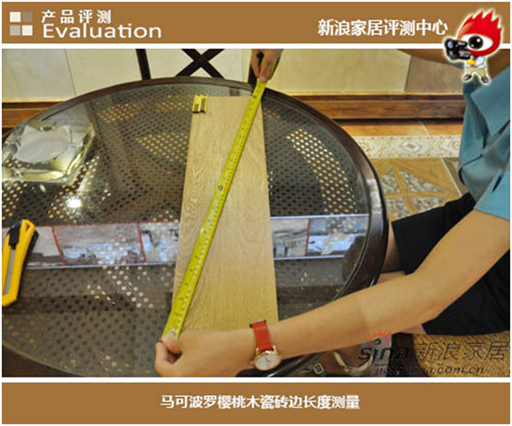 瓷磚對角線之間的距離是否等長,關系著瓷磚的鋪貼效果,瓷磚邊長的精確度越高,鋪貼后的效果越好,買優質瓷磚不但容易施工,而且能節約工時和輔料。經測量之后,馬可波羅櫻桃木瓷磚的兩條對角線的長度幾乎相等,有規范的尺寸才可以保證完美的鋪裝效果。