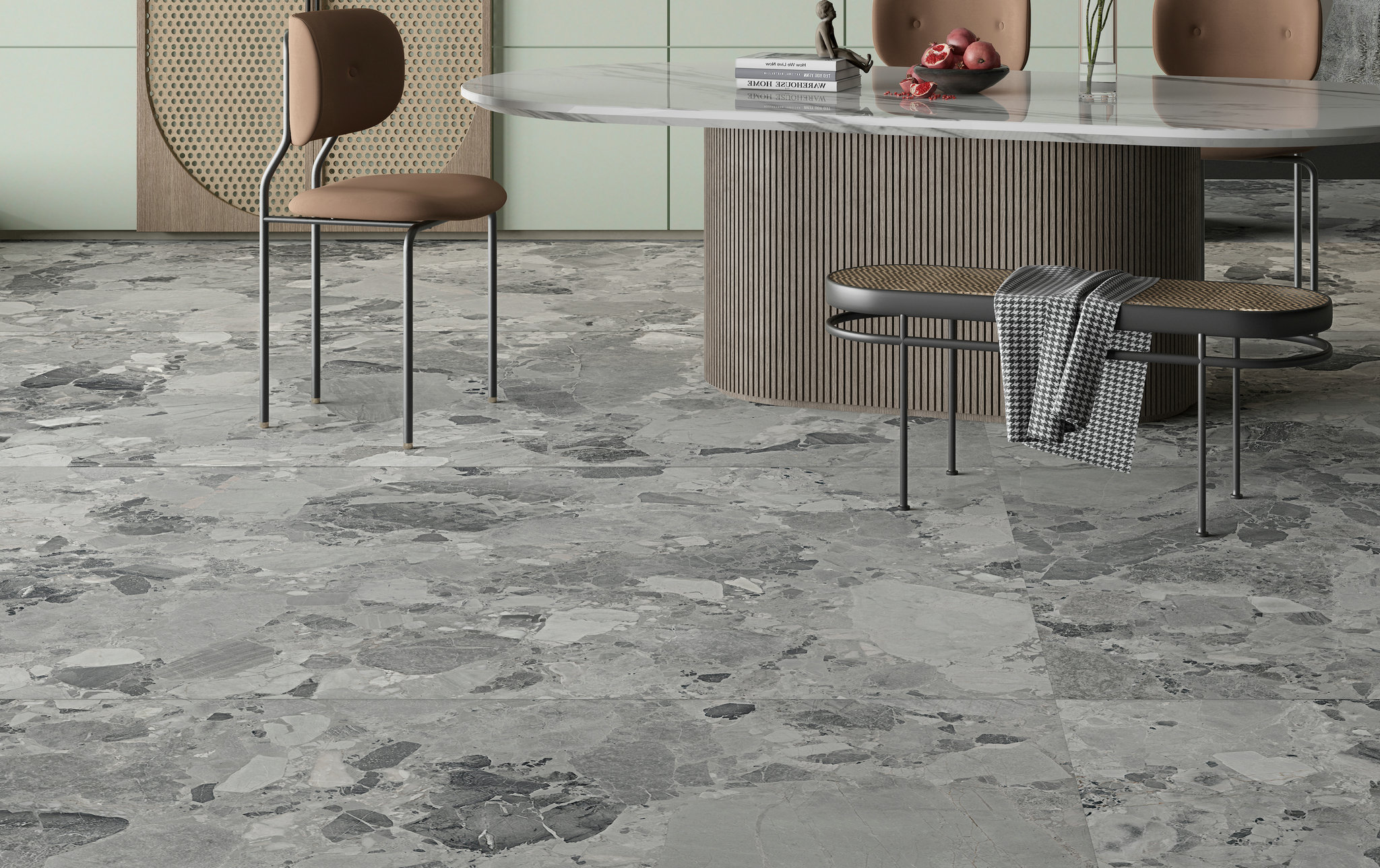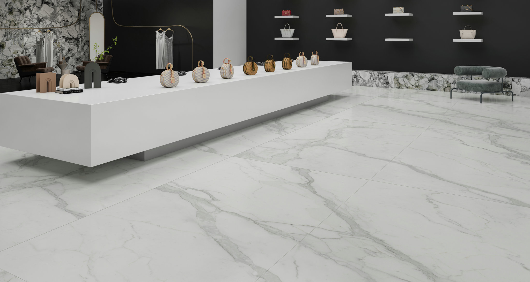 靈感源于米蘭大教堂所用材料,打造原始的純凈質感,加上淺灰色的紋理輔以點綴,層次分明、晶瑩剔透,狂野而不凌亂。