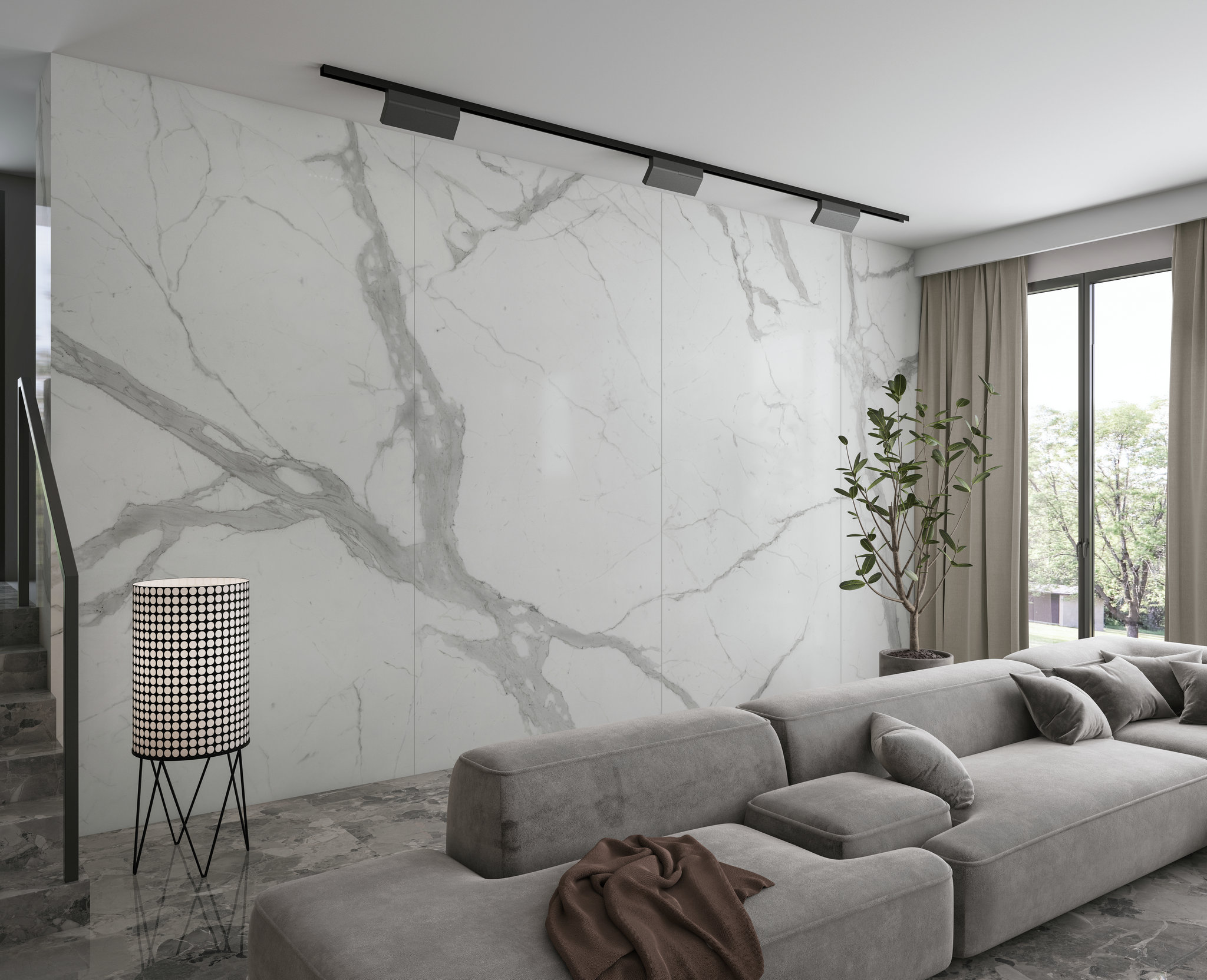 黃金卡拉卡塔底色潔白細膩,具有流動感的紋理給空間帶來一種空靈潔凈的氣息。