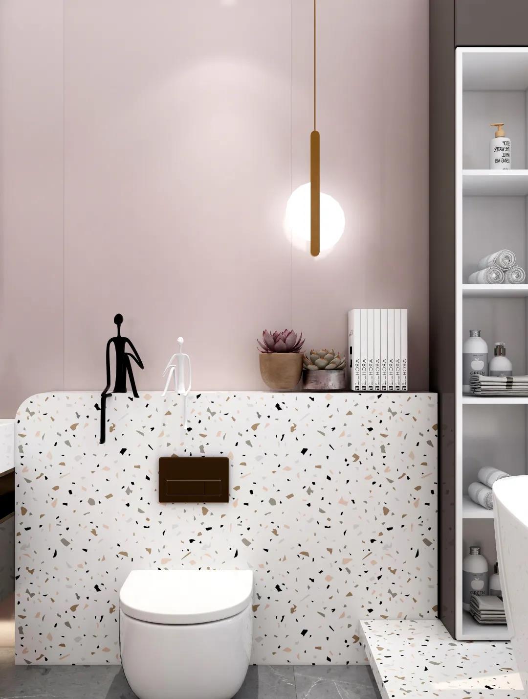 低飽和的粉色雖少了往日的明媚艷麗,卻多了一份沉靜與優(yōu)雅,搭配淺色的水磨石紋理,溫婉精致,恰似少女細膩而含蓄的美。