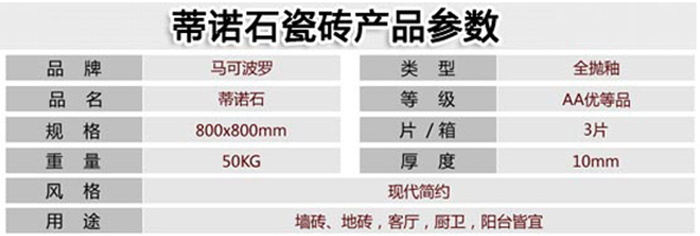 編輯總結:馬可波羅全拋釉瓷磚蒂諾石采用進口釉料,高精工藝,打造五星級防污性能,抗污能力極強,便于日常清潔。每一塊瓷磚表面都經過防水處理,沾水后變澀不滑,充分保護您的安全,因此也是客廳、廚房、衛生間的佳選。
