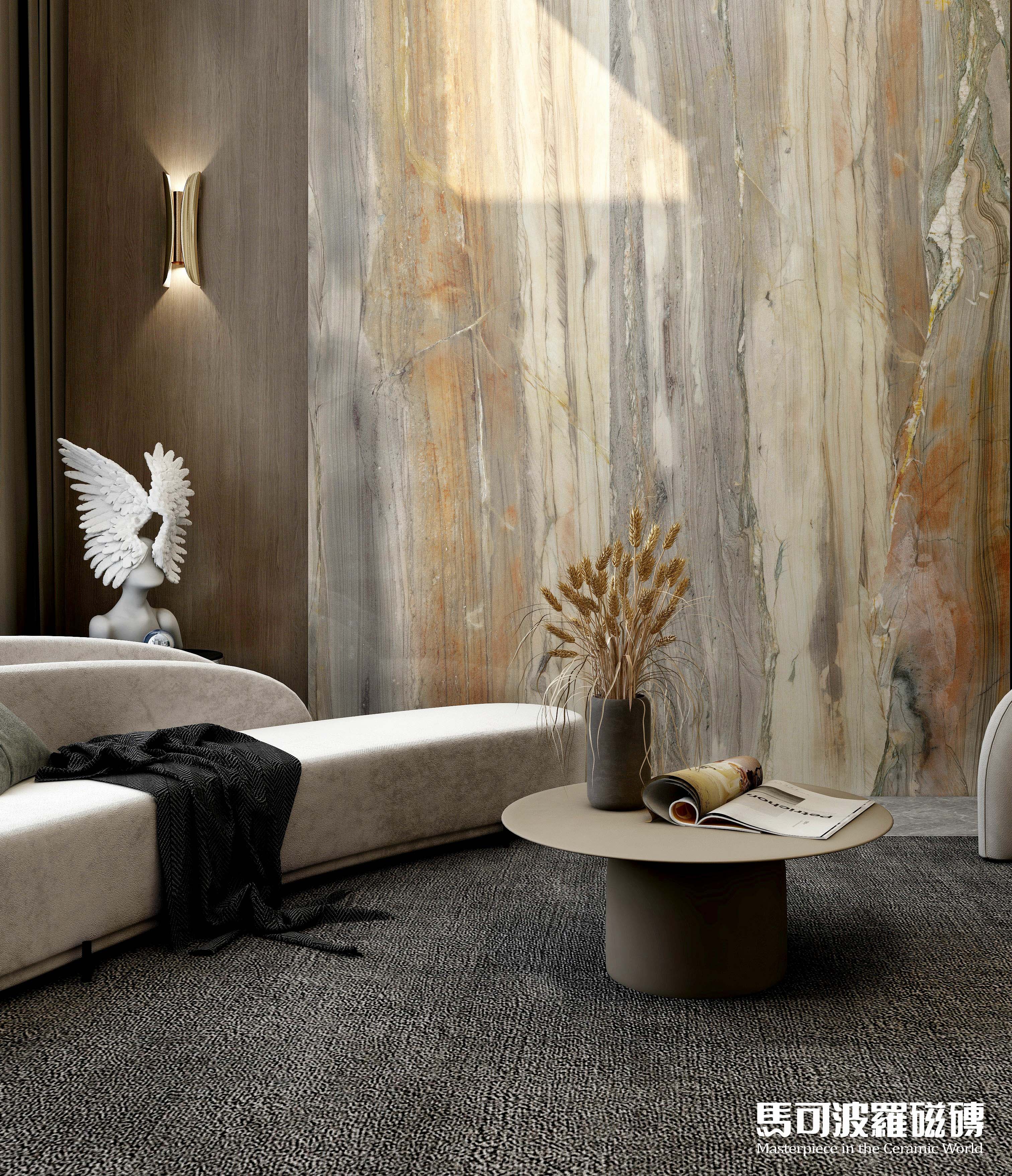 馬可波羅巖板背景墻,演繹時尚優雅的品質生活