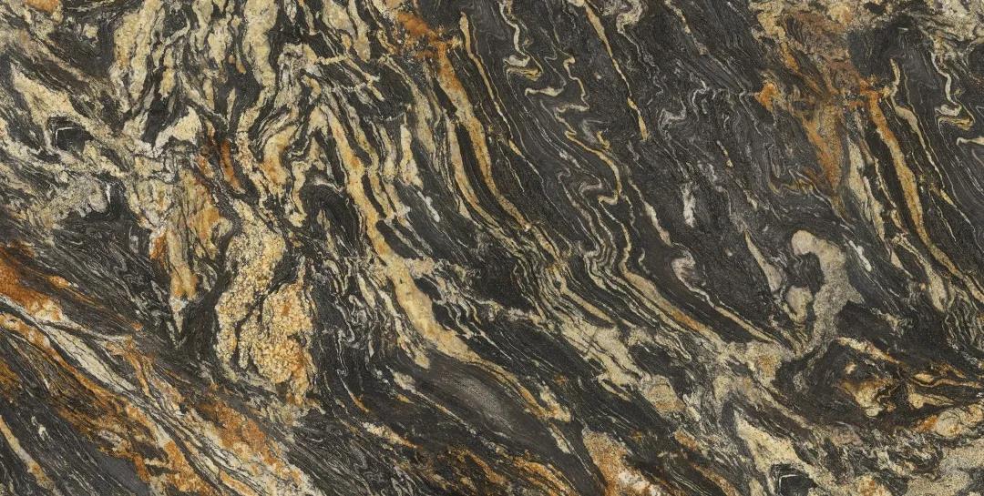 馬可波羅巖板巴西鑠金,將火山噴發與流動的壯觀景象躍然于表面,些許金色紋理更具質感,有種如火山般的神秘與深不可測。