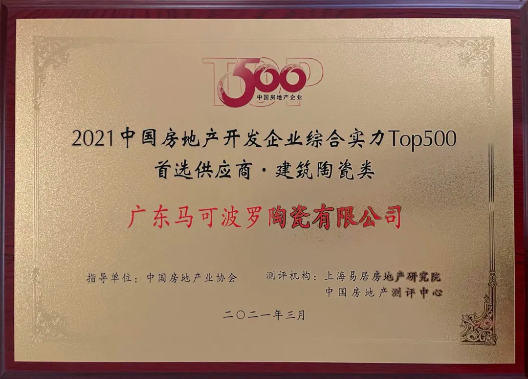 2021年,在被業內譽為房地產及產業鏈領域“奧斯卡”盛典的“中國房地產開發企業綜合實力TOP500首選供應商服務商品牌”測評中,馬可波羅瓷磚以21%的首選率,連續第七年蟬聯建陶品牌供應商排名第一!