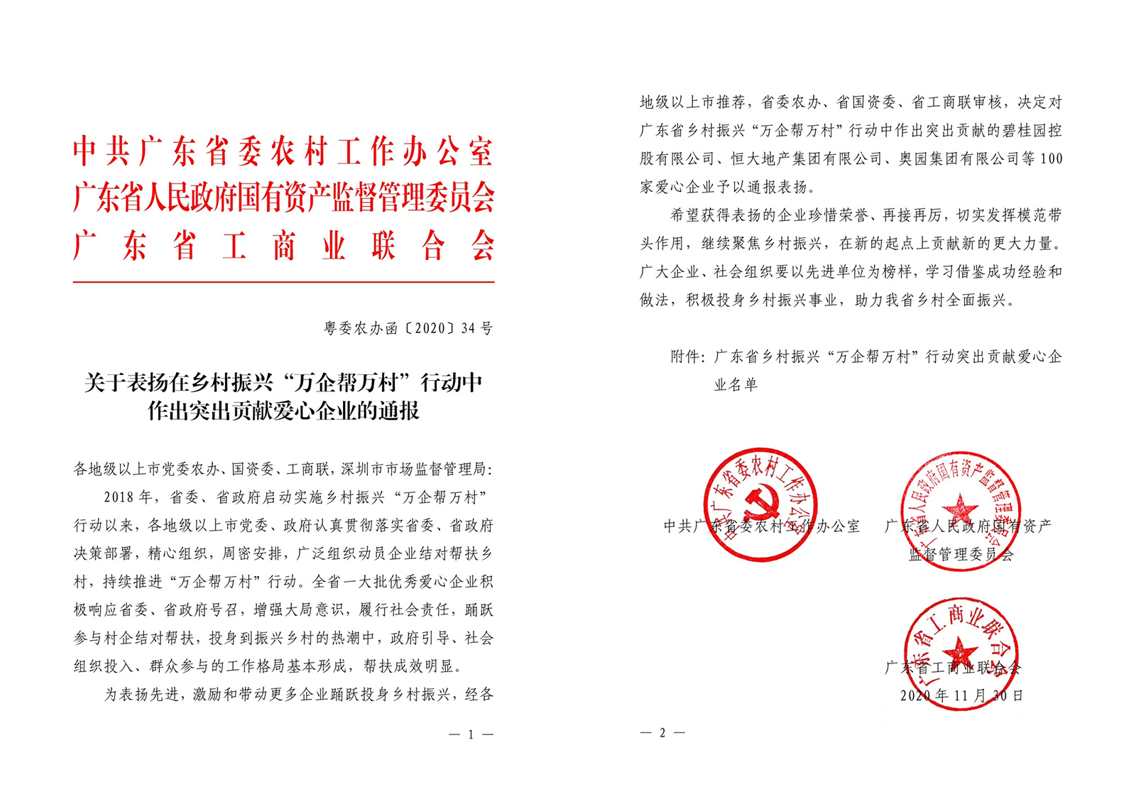 積極踐行社會責任,馬可波羅瓷磚投身“鄉村振興”建設,助力東莞對口幫扶云南昭通項目,為改善鄉村環境、完善鄉村基礎設施建設、推動鄉村振興發展貢獻力量,榮膺“鄉村振興‘萬企幫萬村’行動突出貢獻愛心企業”稱號。
