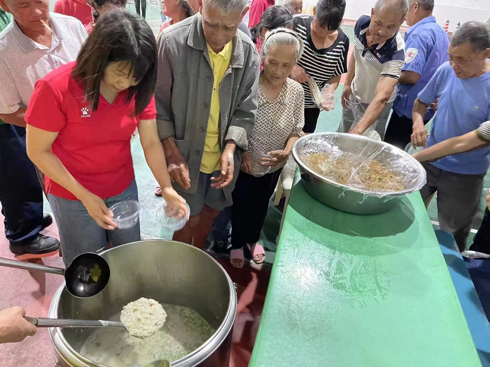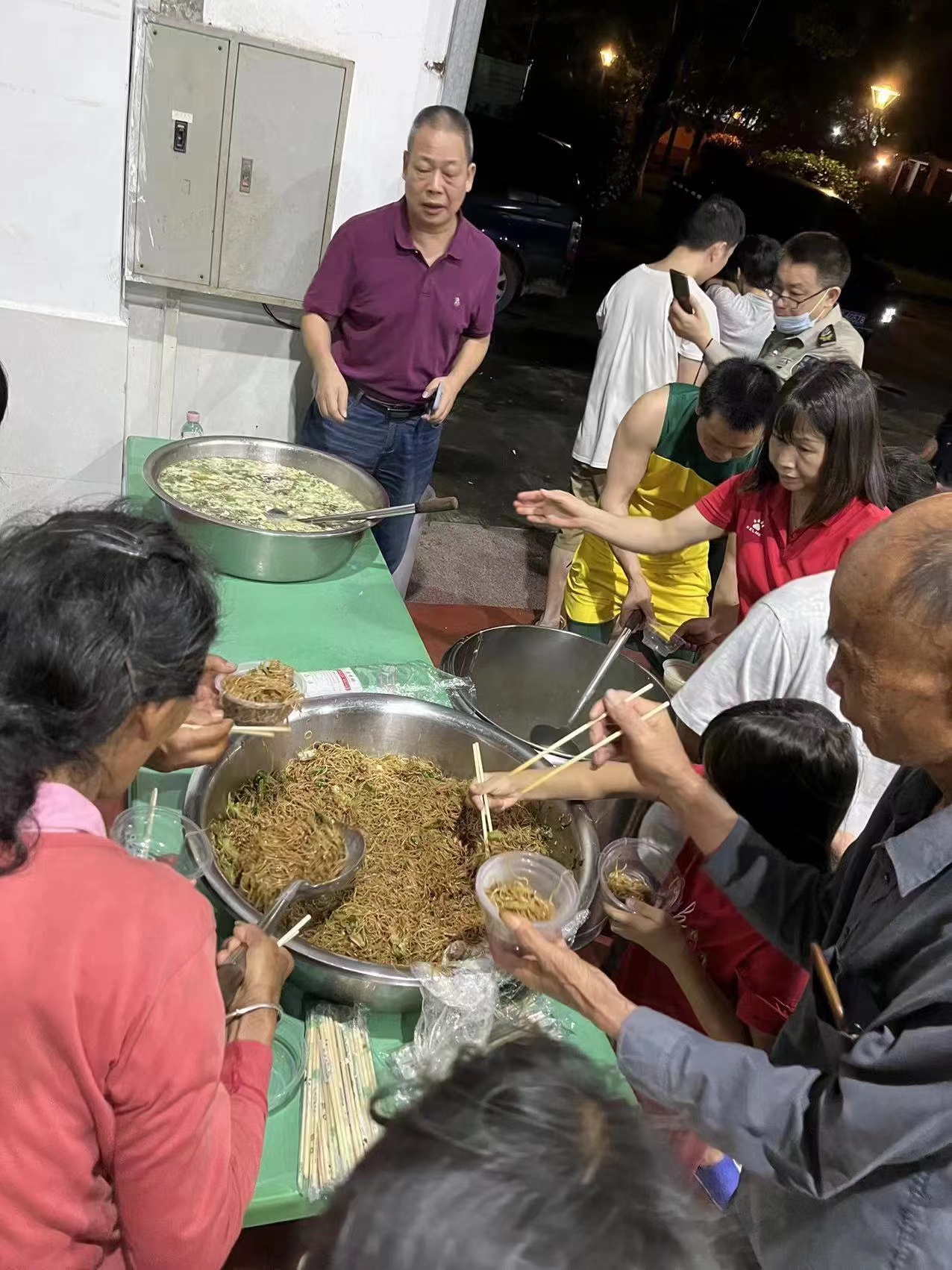 在安頓受災群眾的同時,清遠生產基地行政部迅速召回后勤廚師,連夜為受災群眾做好了熱乎乎的皮蛋瘦肉粥、炒米粉等飯菜。