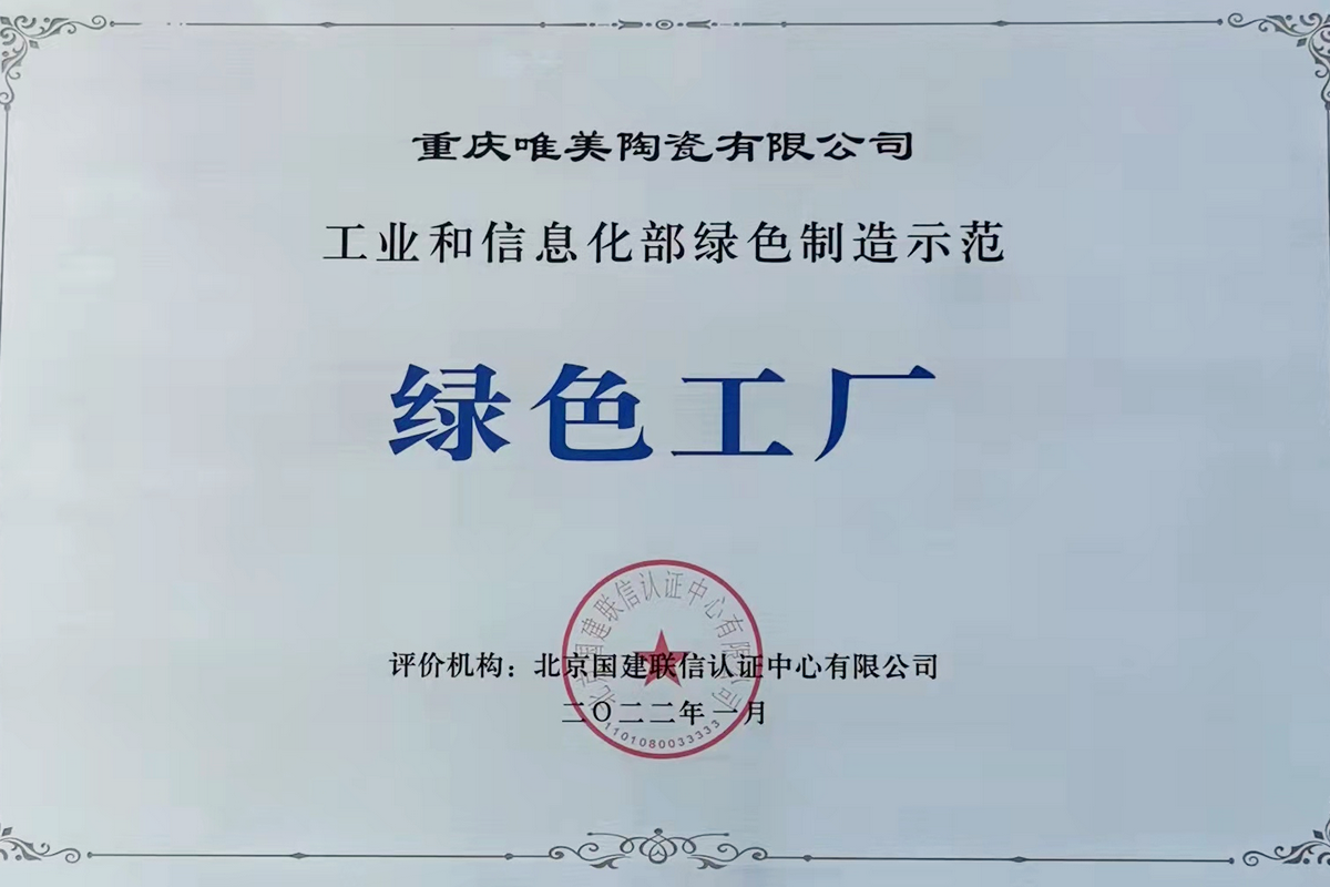 6月17日,重慶市經濟信息委舉辦“2022年節能宣傳周活動暨全市工業綠色發展業務能力提升”培訓會議,并代表工業和信息化部對全市獲得"國家綠色工廠″企業代表進行授牌。馬可波羅控股旗下重慶唯美陶瓷有限公司獲得“2021年國家綠色工廠”授牌。
