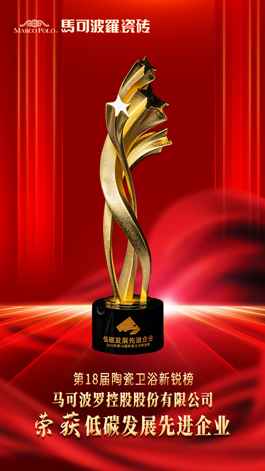 憑借對綠色發展、低碳環保理念的貫徹和踐行,馬可波羅控股榮獲第18屆陶瓷衛浴新銳榜“低碳發展先進企業”,充分體現了行業對馬可波羅控股綠色制造的高度認可。