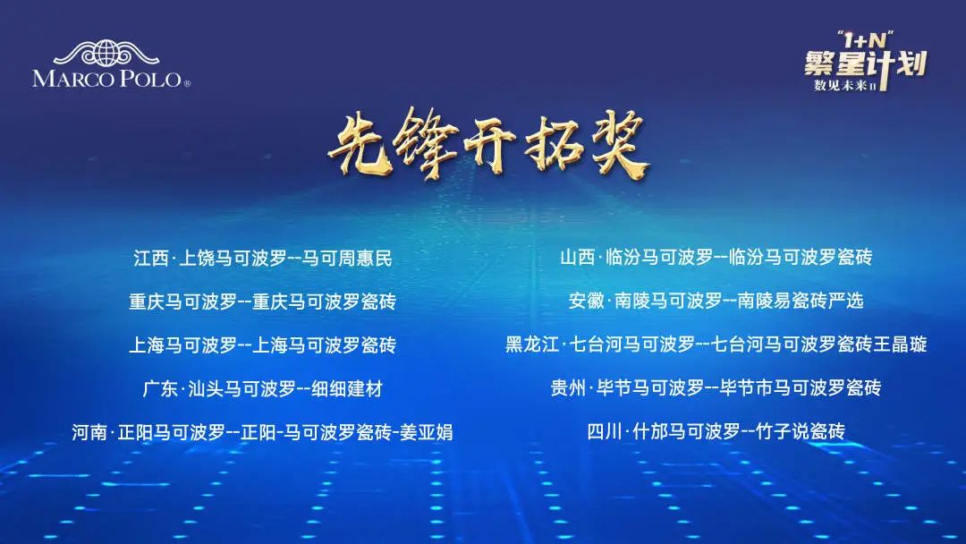 為樹立榜樣、凝聚奮進力量,本次會議還特別頒發了“先鋒開拓獎”,表彰本年度數字化營銷實踐成效卓越的經銷服務商團隊,鼓勵馬可波羅營銷鐵軍不斷創新實踐,繼續勇攀數字化營銷高峰。