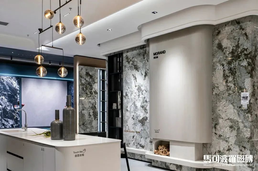 馬巖松在麗水機場設計中所打造的 “飛鳥、云霧、山丘”流線型結構,既展現了自然與建筑和諧相融的意境,也體現了曲面設計的靈動美學,而這與馬可波羅的產品研發理念不謀而合。2021年,馬可波羅創新研發曲面巖板,突破平面設計局限,為空間設計提供更優質的設計材料。