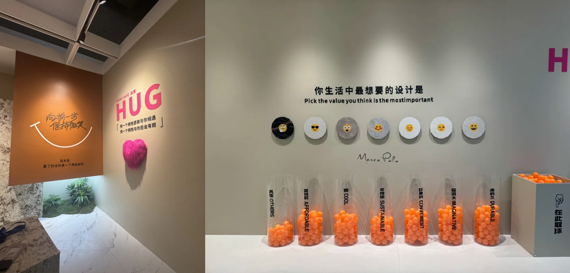 為了營造更優(yōu)質(zhì)的感官體驗,馬可波羅瓷磚通過色彩、材質(zhì)、光影和互動裝置的精心搭配,打造集視覺、聽覺、觸覺于一體的交互效果,讓每一位參觀者在場域互動中得到身心的放松。