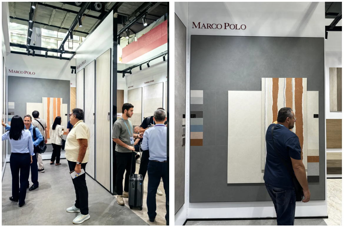 開展首日,馬可波羅瓷磚展館便吸引了眾多觀展客商前來參觀問詢,感受復(fù)古未來主義新品魅力,成為了本次展會中備受矚目的的人氣熱點。