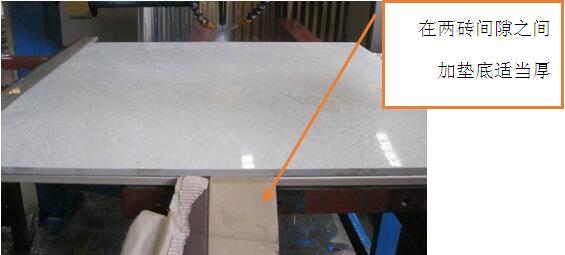 2 、如果待切磚不平整導致與墊底瓷磚之間有縫隙,可在兩者間加墊適當厚度紙片,避免掉角的產生。